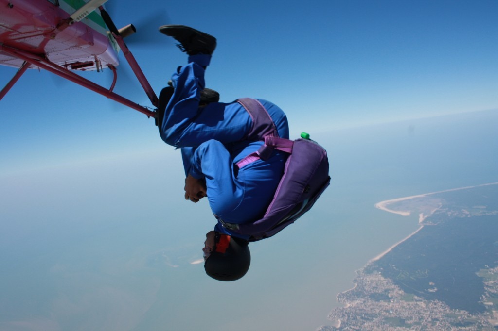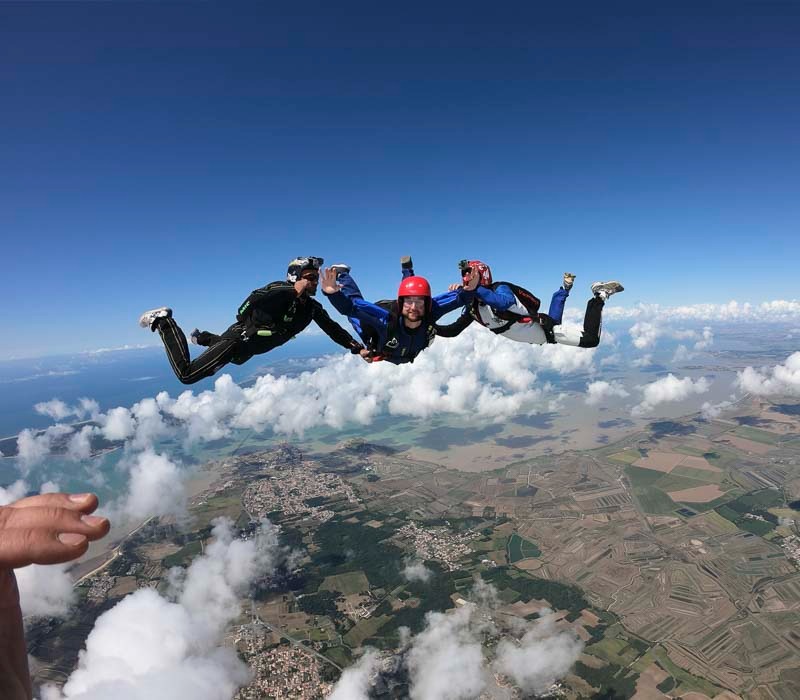 – Un survol des îles d’Aix, Oléron, Madame… Pendant 20 min de montées en avion avec retour sur le continent pour le saut.