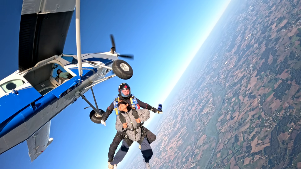 Avant chaque saut, vous êtes guidé pas à pas. Ainsi, lors d’un briefing initial, vous découvrez les équipements, les gestes essentiels et les consignes simples qui garantissent une expérience sereine. Par la suite, durant les 15 minutes d’ascension, votre moniteur vous prépare mentalement à la sortie de l’appareil.
